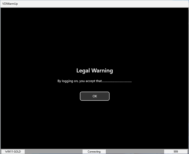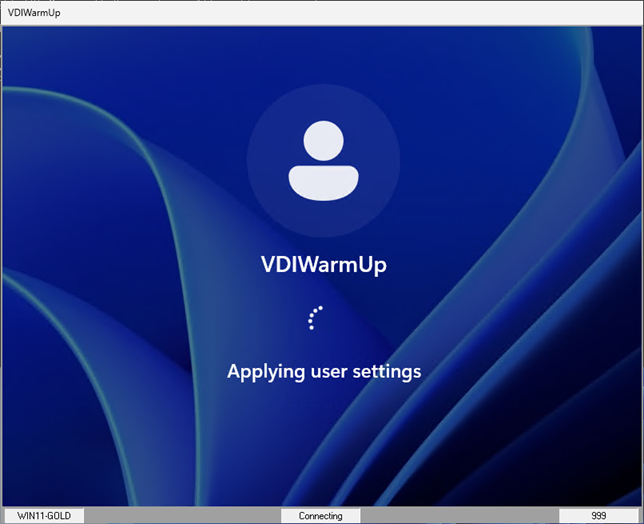 On a Multi-User operating system or Server operating system, the VDIWarmUp window will open interactively and display the logon and logoff process.