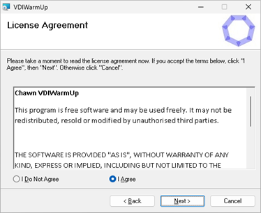 VDIWarmUp.exeand supporting files are located inC:\Program Files\Chawn\VDIWarmUp