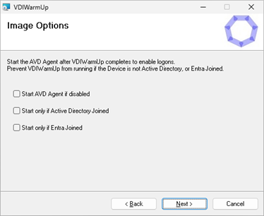 If the Master Image will join Microsoft Active Directory or Entra ID, select the appropriate option. This prevents VDIWarmUp from interrupting the image deployment process. It will also prevent VDIWarmUp from running at startup when updating the Master Image.